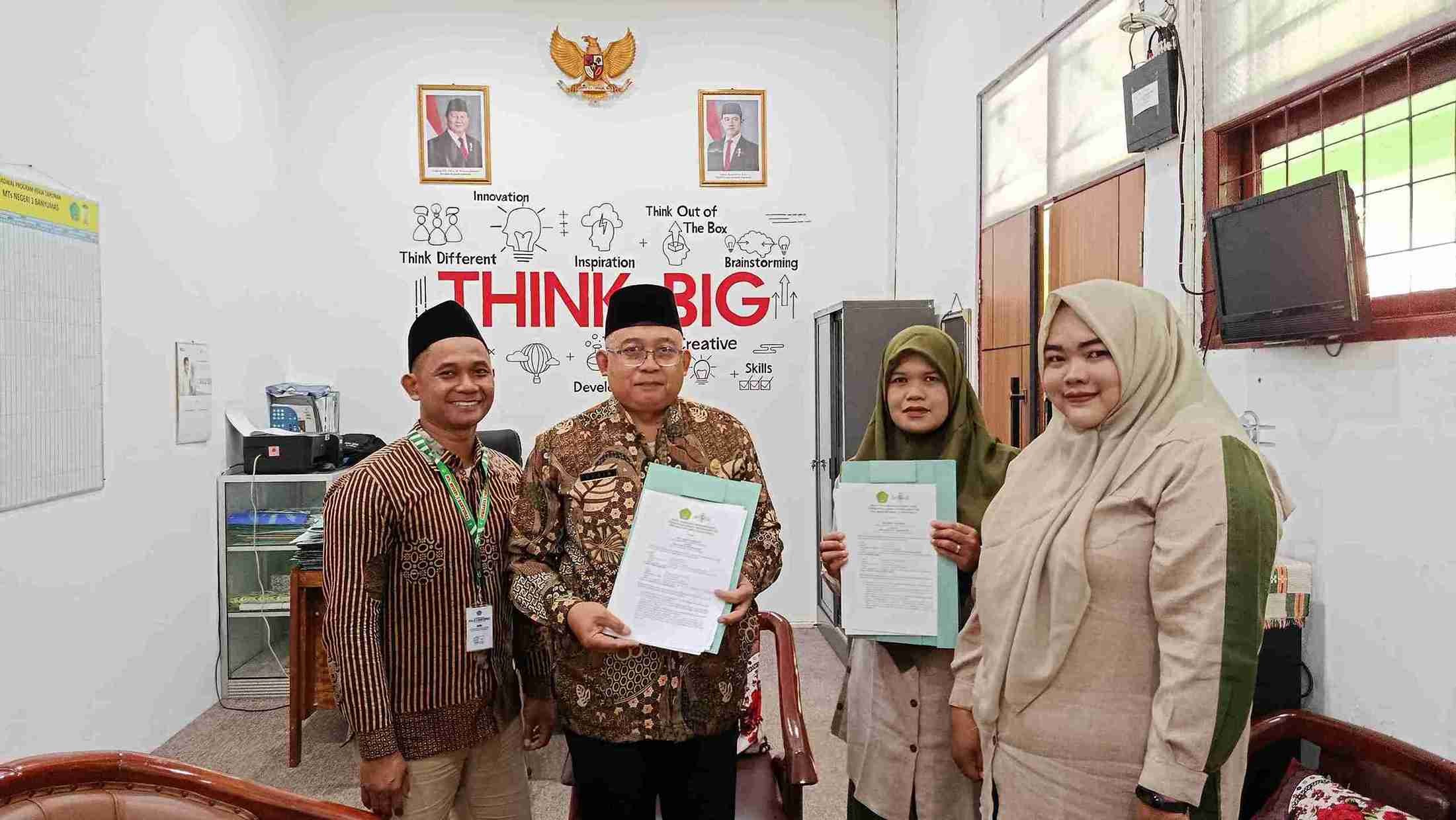 Sementara itu, Kepala MTs Negeri 3 Banyumas, Sudir, menyampaikan bahwa madrasah bukan hanya tempat belajar, tetapi juga ruang untuk berbagi dan bertumbuh bersama. Beliau menekankan pentingnya membangun jejaring antar lembaga pendidikan sebagai bagian dari penguatan ekosistem pendidikan Islam yang solid dan saling mendukung. Menurutnya, kolaborasi semacam ini bukan sekadar peminjaman fasilitas, melainkan bentuk ukhuwah dan tanggung jawab bersama dalam mencetak generasi unggul.