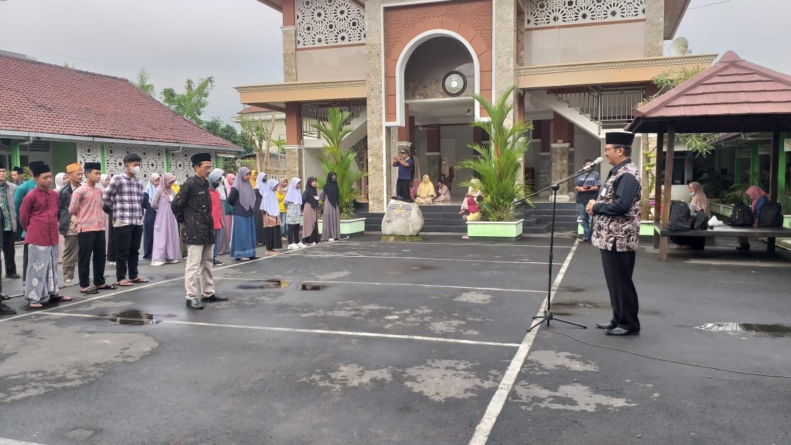 Purwokerto : 58 peserta Pekan Olah Raga dan Seni Santri Diniyah Takmiliyah (PORSADIN) Kabupaten Banyumas dilepas oleh Kepala Kantor Kementerian Agama Kabupaten Banyumas H. Aziz Muslim, S.Ag. M.Pd.I dalam acara apel pelepasan kontingen PORSADIN di halaman Kantor. Kamis (3/11)
