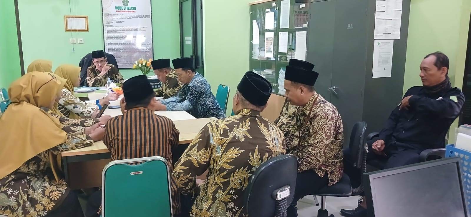 Banyumas — Kantor Urusan Agama (KUA) Banyumas menggelar rapat koordinasi yang dipimpin langsung oleh Kepala KUA Banyumas dan diikuti oleh seluruh Aparatur Sipil Negara (ASN), bertempat di ruang kerja KUA Banyumas. Kamis (16/04)