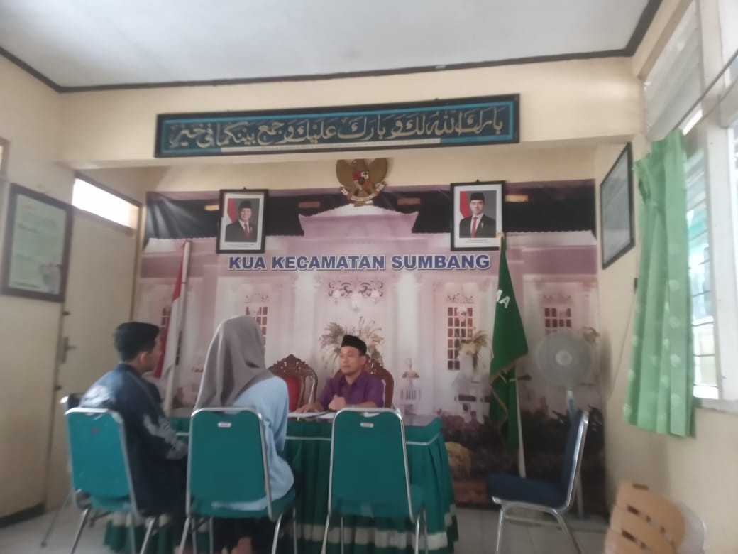 Banyumas — KUA Sumbang menggelar kegiatan Bimbingan Perkawinan (Bimwin) bagi satu pasangan pengantin yang berasal dari Tambaksogra dan Karangsari sebagai upaya mencetak generasi berkualitas. Kegiatan ini dilaksanakan di Aula Balai Nikah KUA Sumbang. Jumat (19/12)