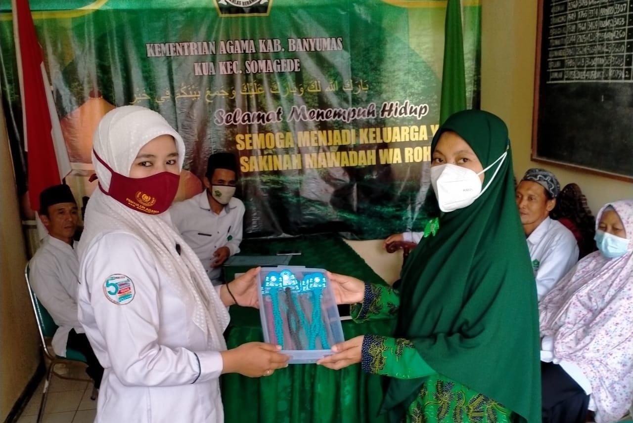 KUA Somagede Bagikan Konektor Masker Saat Pembinaan