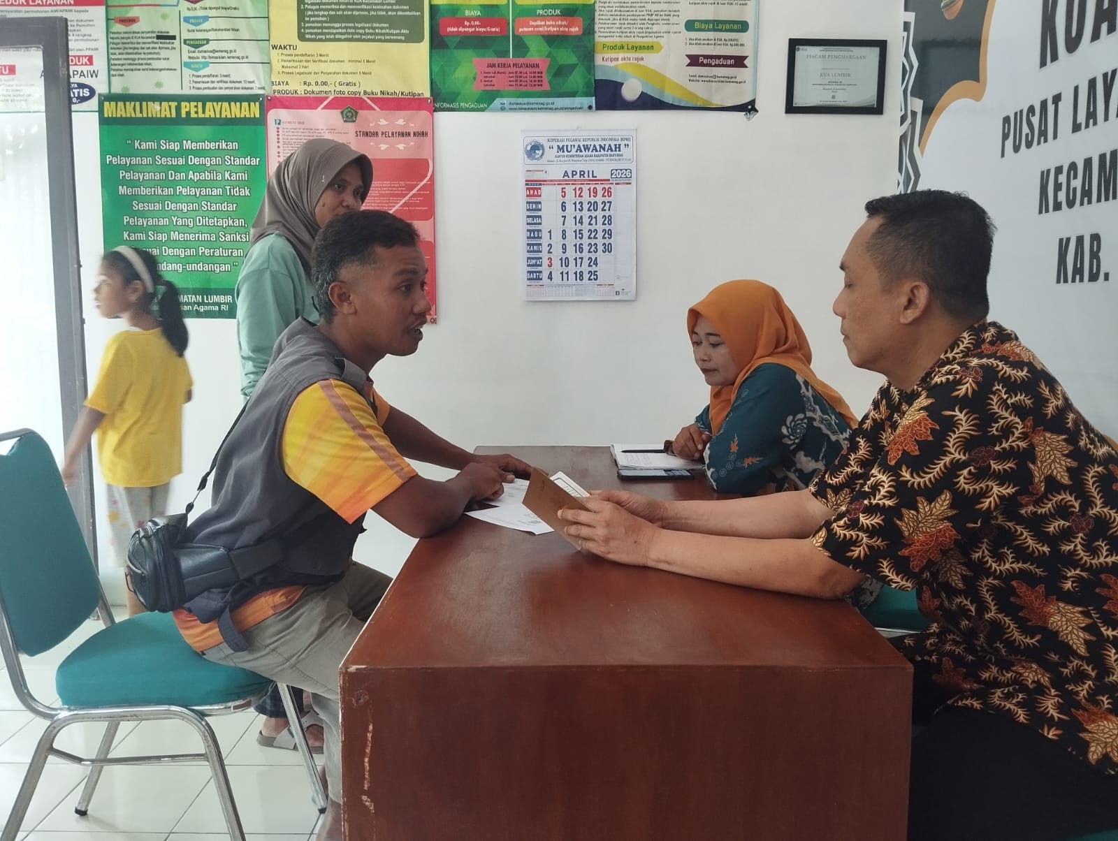 Banyumas — Kantor Urusan Agama (KUA) Lumbir kembali menunjukkan komitmennya dalam memberikan pelayanan terbaik kepada masyarakat melalui pelayanan permohonan duplikat buku nikah. Kali ini, pelayanan diberikan kepada Supiyah, warga asal Ciwera, Desa Lumbir, yang mengajukan permohonan penerbitan duplikat buku nikah di KUA Lumbir. Kamis (23/04)