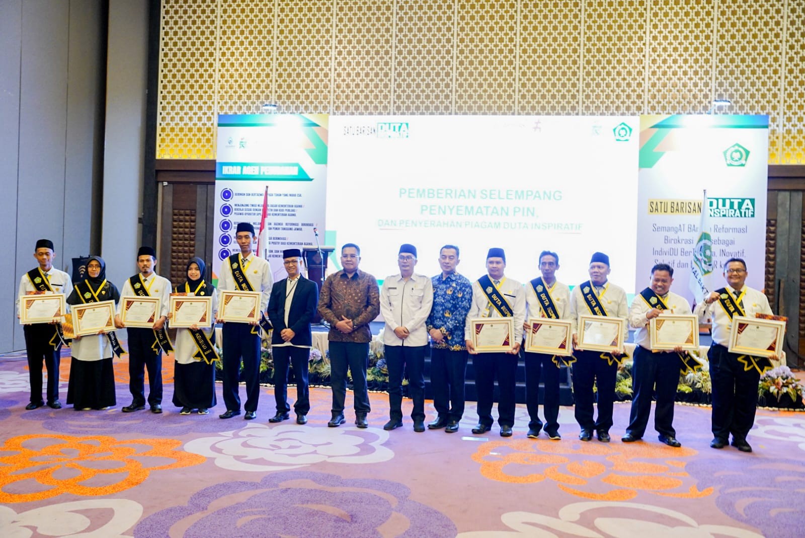 Bandung (Kemenag) --- Kementerian Agama mengukuhkan 43 agen perubahan sebagai Duta Inspiratif Kemenag. Agen perubahan ini merupakan para Aparatur Sipil Negara (ASN) yang memiliki inovasi-inovasi pada satuan kerjanya masing-masing.