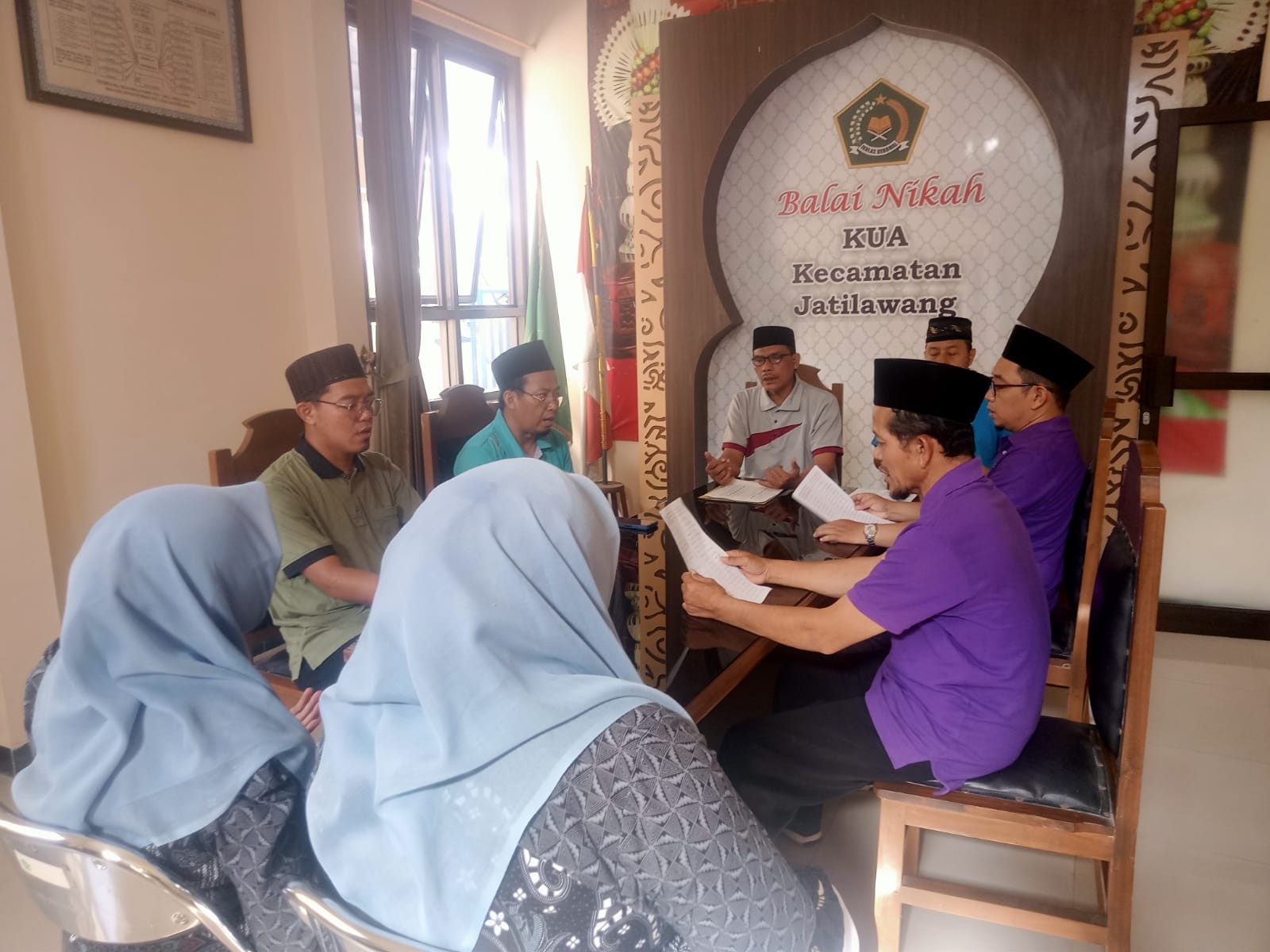 Setelah rangkaian pembacaan Asmaul Husna selesai, kegiatan dilanjutkan dengan rapat koordinasi (rakor). Dalam pertemuan tersebut, para pegawai membahas berbagai program kerja serta evaluasi pelayanan keagamaan kepada masyarakat di wilayah Kecamatan Jatilawang.