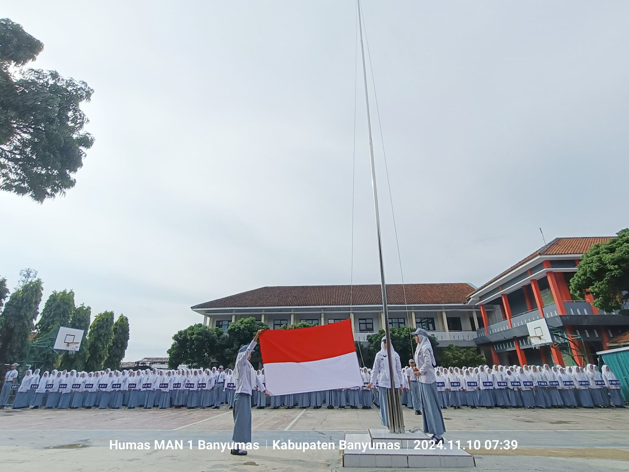 Humas, MAN 1 Banyumas, – Dalam rangka memperingati Hari Pahlawan, MAN 1 Banyumas melaksanakan upacara bendera yang berlangsung di lapangan tengah sekolah, pada hari Minggu, 10 November 2024. Upacara ini dihadiri oleh seluruh stakeholder MAN 1 Banyumas, mulai dari siswa, guru, dan staf.