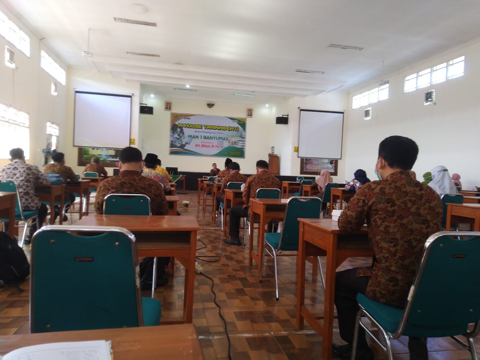 IHT ini dilaksanakan hari Rabu 1 September 2021 dan dibuka oleh Bapak Bangkit Tri Handoko. S.Pd selaku selaku wakil kepala bidang akademik. Dan diikuti oleh seluruh Bapak Ibu guru dengan tetap menjaga jarak dan mematuhi protokol kesehatan. Pemateri dari Bapak Drs. Mikun M.Pd.I Guru Biologi Man I Banyumas mengisi Media Pembelajaran Online dan Bapak Patiman staf Penma Kemenag Kab. Banyumas mengisi RDM sekaligus launching RDM yang mulai diaplikasikan oleh Bapak Ibu Guru MAN I Banyumas.