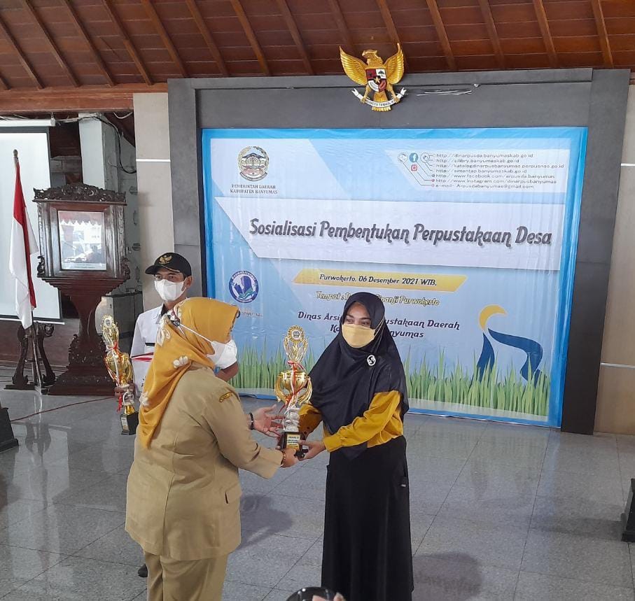 Penyerahan hadiah dilaksanakan pada hari Senin tanggal 6 Desember 2021 oleh Bunda Literasi Ibu Erna Husein bersamaan dengan kegiatan Sosialisasi Pembentukan Perpustakaan Desa di Pendopo Sipanji Kabupaten Banyumas.