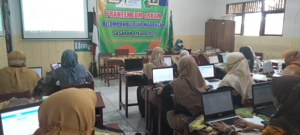 Kegiatan pendampingan praktek EDM eRKAM di MIN 3 Banyumas, diikuti oleh Kepala madrasah, bendahara dan operator MI di wilayah kecamatan Kembaran, Sumbang dan Kalibagor yang berjumlah 12 lembaga. Dalam kesempatan itu, ketua KKM MI Kembaran, Sabar Munanto mengajak kepada seluruh madrasah untuk melakukan evaluasi secara menyeluruh agar diketahui kekuatan, hambatan, tantangan serta peluang yang dimiliki madrasah sebagai tolak ukur kinerja madrasah saat ini dan selanjutnya digunakan untuk menyusun program kerja dan anggaran madrasah di tahun-tahun berikutnya. (akw)