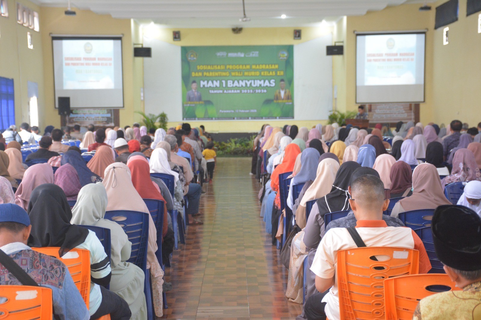 Purwokerto (humas) - MAN 1 Banyumas kembali menunjukkan komitmennya dalam mengawal kesuksesan peserta didik kelas XII dengan menggelar Sosialisasi Program Madrasah dan Parenting bagi wali murid kelas XII. Kegiatan ini bertempat di Aula Gelora Prestasi MAN 1 Banyumas dan berlangsung dengan penuh antusiasme serta semangat kebersamaan. Kamis (12/02)