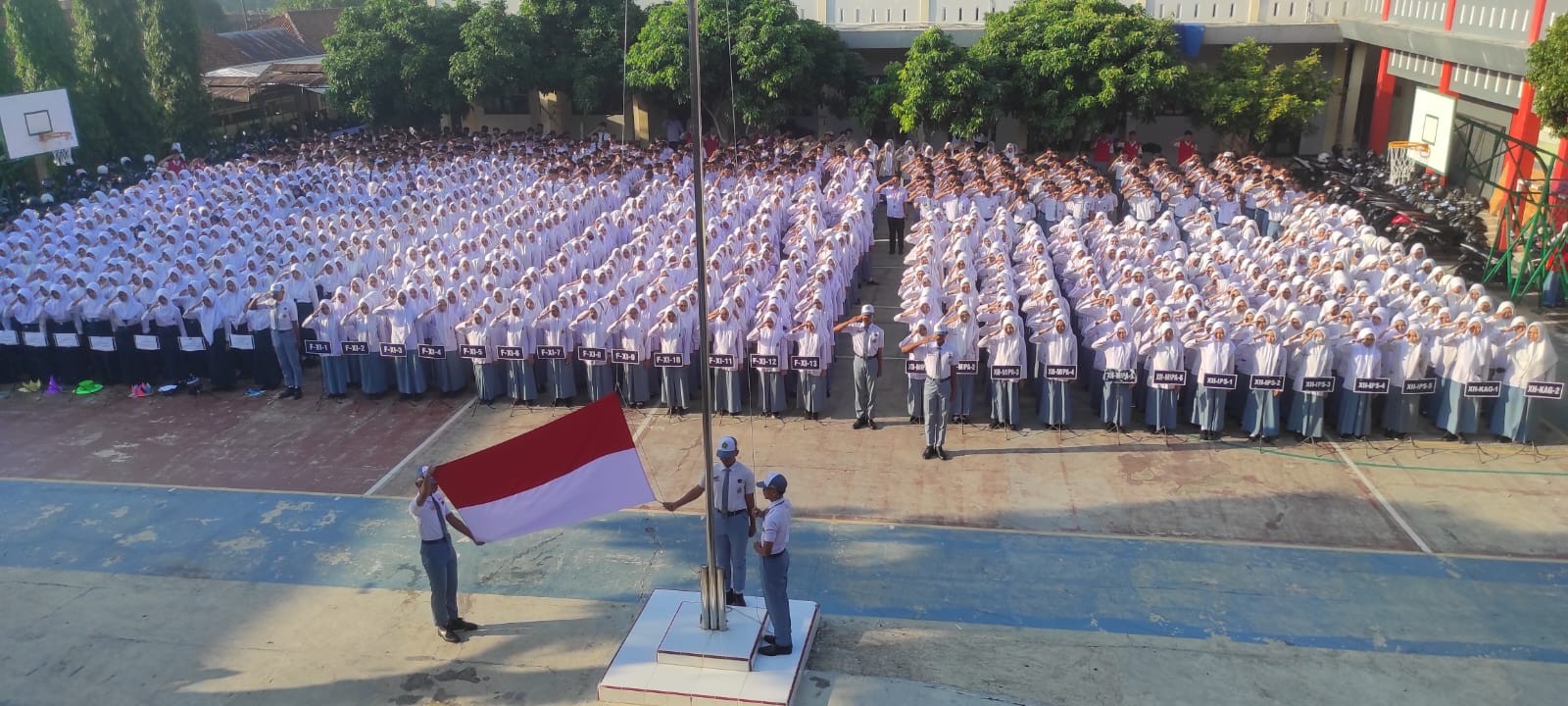 Purwokerto - MA Negeri 1 Banyumas mengawali tahun ajaran baru dengan menggelar upacara bendera pada hari Senin, 15 Juli 2024. Acara ini dihadiri oleh seluruh siswa-siswi dari kelas X, XI, dan XII, serta para guru dan tenaga pendidik. Total peserta siswa baru berjumlah 540 yang baru saja bergabung dengan keluarga besar MAN 1 Banyumas.