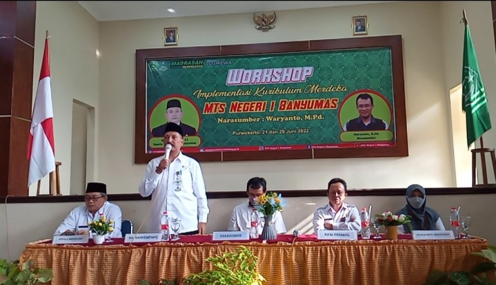 Kepala Kantor Kementerian Agama Kabupaten Banyumas, H. Aziz Muslim, S.Ag, M.Pd.I membuka kegiatan Workshop Implementasi Kurikulum Merdeka yang diselenggarakan oleh MTs Negeri 1 Banyumas pada hari Selasa, 21 Juni 2022 bertempat di Aula MTs Negeri 1 Banyumas.
