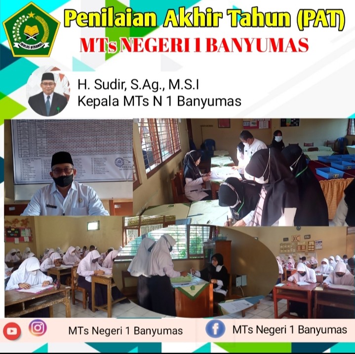 PAT (Penilaian Akhir Tahun) merupakan tolak ukur kemampuan siswa dalam belajar selama satu tahun yang dilaksanakan pada akhir semester genap. MTs Negeri 1 Banyumas melaksanakan PAT yang diikuti oleh selurus siswa Kelas VII dan VIII sejumlah 18 Kelas mulai hari ini Senin, 30 Mei 2022.