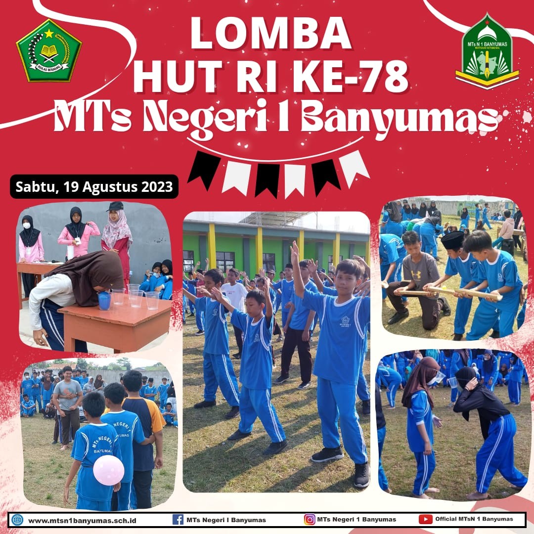 Pada perlombaan hari ini, Jum'at, 18 Agustus 2023, lomba yang diadakan oleh MTs Negeri 1 Banyumas adalah lomba estafet banyu, lomba nyunggi tampah, lomba kayu mlaku serta lomba K7 dan penghijauan.