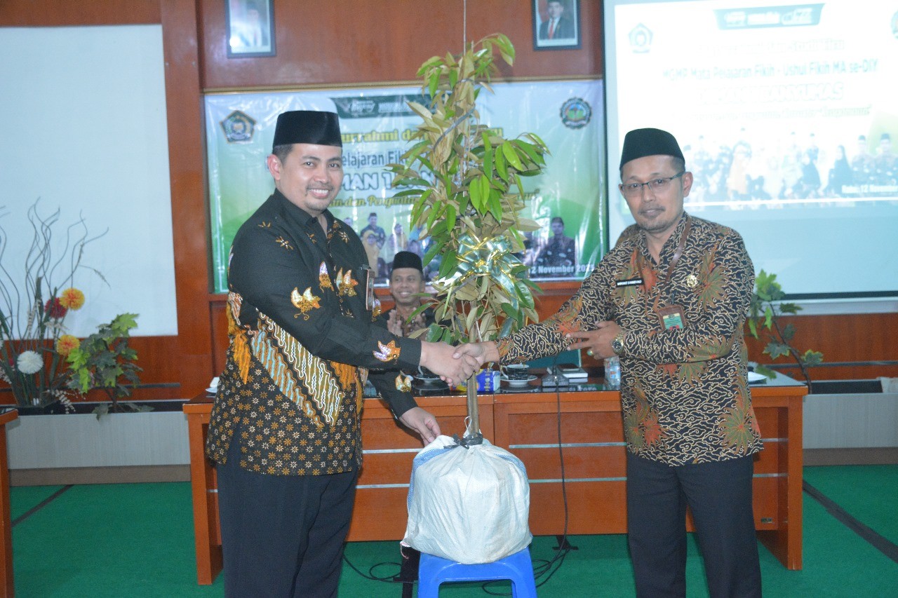 Sebagai simbol persahabatan dan komitmen terhadap ekoteologi serta pelestarian lingkungan, dilakukan tukar kenang-kenangan antara kedua pihak. MAN 1 Banyumas menyerahkan bibit pohon durian bawor khas Banyumas kepada MGMP Fikih–Ushul Fikih MA se-DIY, sementara pihak tamu juga memberikan cendera mata serupa.