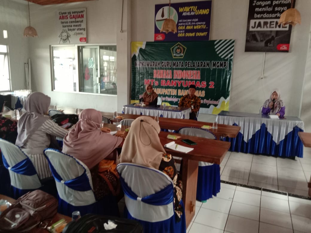 Banyumas – Musyawarah Guru Mata Pelajaran (MGMP) Bahasa Indonesia tingkat Madrasah Tsanawiyah Banyumas 2 mengadakan kegiatan MGMP, Sabtu (21/05/22). Kegiatan ini dilaksanakan di Elbe Resto Kebarongan Kemranjen Banyumas. Kegiatan MGMP dihadiri oleh Pengawas Pembina MGMP serta diikuti oleh 30 orang guru Bahasa Indonesia MTs yang berasal dari 18 Madrasah di Wilayah KKM Banyumas Selatan.
