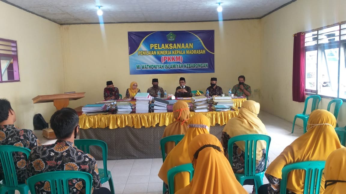 Kemranjen : Kepala Kantor Kemenag Kabupaten Banyumas Drs. H. Akhsin Aedi, M.Ag melakukan monitoring pelaksanaan Penilaian Kinerja Kepala Madrasah (PKKM) di MI Wathoniyah Islamiyah Kebarongan Kemranjen. Jumat (21/01)