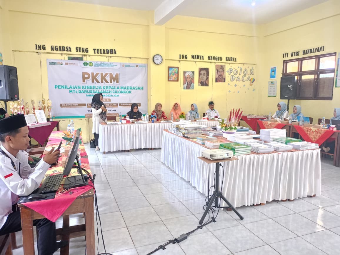 Banyumas – MTs Darussalamah Cilongok sukses menyelenggarakan Penilaian Kinerja Kepala Madrasah (PKKM) 4 Tahunan. Kegiatan yang baru pertama kali dilaksanakan secara sukses oleh madrasah ini, berlangsung di ruang kelas VII dan dihadiri langsung oleh tim penilai dari Pengawas Madrasah. Senin (15/12)