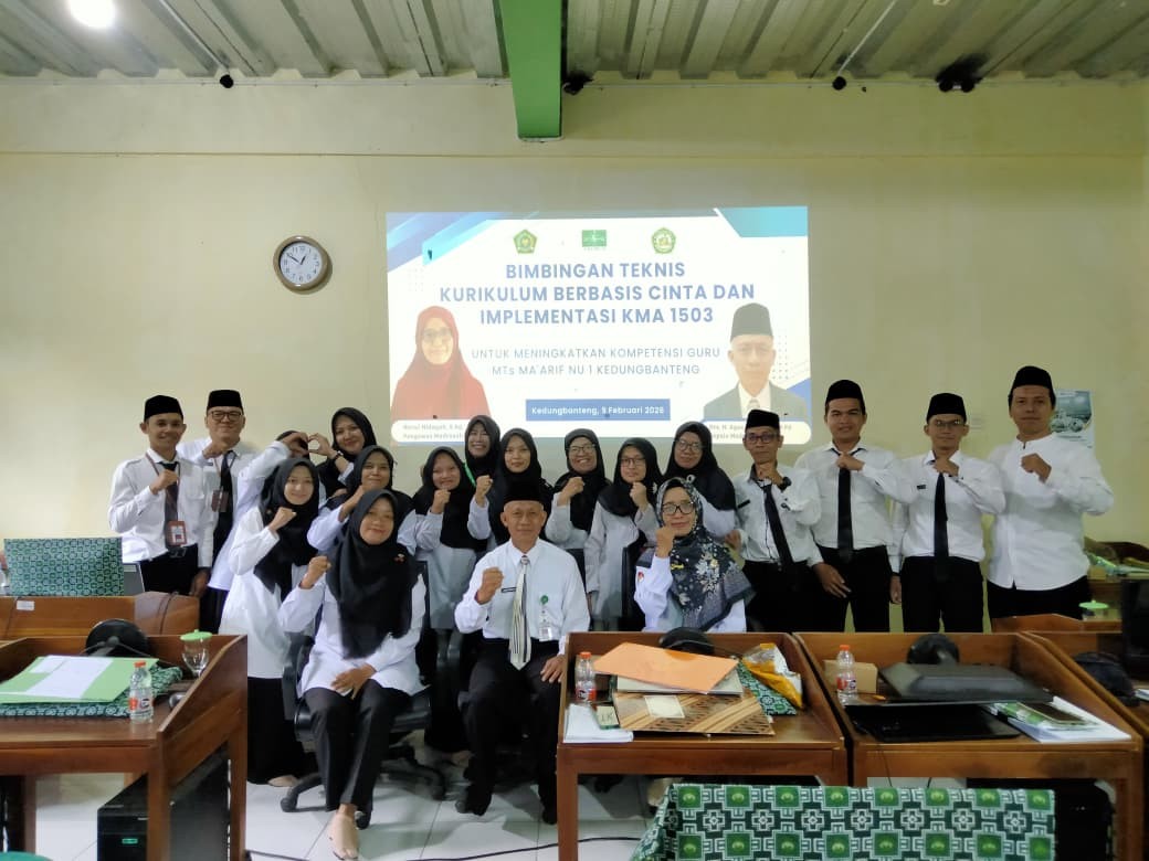 Banyumas - MTs Ma’arif NU 1 Kedungbanteng menyelenggarakan kegiatan Bimbingan Teknis (Bimtek) Implementasi KMA Nomor 1503 Tahun 2025. Kegiatan ini diikuti oleh kepala madrasah, pendidik, serta tenaga kependidikan sebagai upaya peningkatan pemahaman dan kesiapan seluruh warga madrasah dalam menerapkan kebijakan terbaru Kementerian Agama. Senin (09/02)