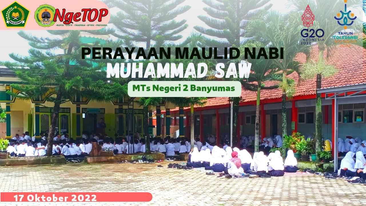 Banyumas - Dalam rangka menanamkan akhlak terpuji dan meneladani karakter, sikap, dan perilaku Rasulullah Saw, MTsN 2 Banyumas menyelenggarakan pengajian dalam rangka Maulid Nabi Muhammad Saw, bertempat di halaman Mushola Ulul Albab madrasah, mulai pukul 08.00 WIB pada Senin, 17 Oktober 2022. Dihadiri oleh seluruh siswa kelas VII, VIII dan IX, tenaga pendidik, dan tenaga kependidian MTsN 2 Banyumas dengan menghadirkan pembicara Kepala MIN 1 Purwokerto, Saridin, S. Ag., M. Pd.I untuk memberikan pembekalan dan mau’idlah hasanah.