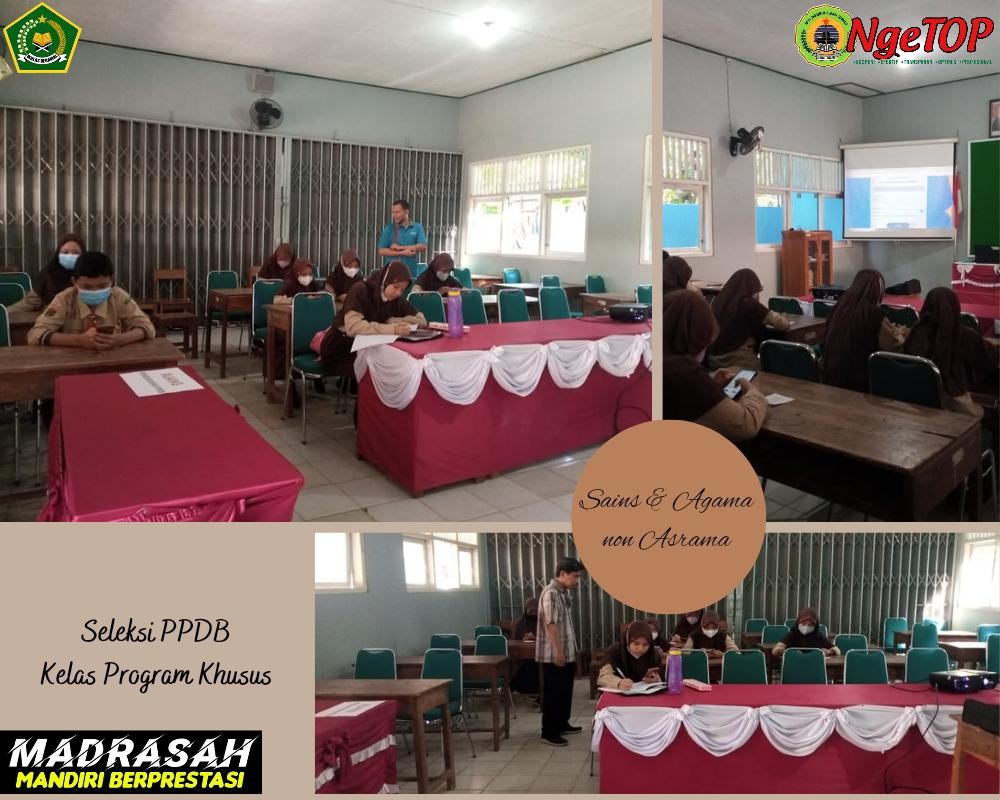 Seleksi kelas program khusus ini meliputi tes tertulis yang dilaksanakan secara online menggunakan HP berbasis CBT dengan pengawasan dari petugas. Bagi kelas PK Sains materi tes meliputi mata pelajaran IPA dan Matematika, sedangkan untuk kelas PK Agama Nonasrama tes meliputi materi Pendidikan Agama Islam.