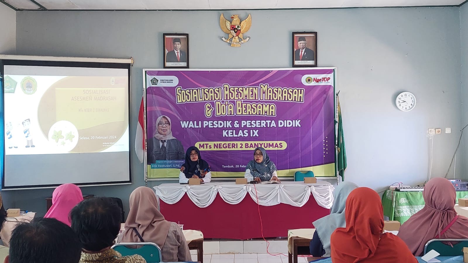 Banyumas_ Selasa (20/02) bertempat di ruang rapat MTsN 2 Banyumas pukul 10.00 WIB MTsN 2 Banyumas mengadakan sosialisasi AM (Asesmen Madrasah) bersama seluruh wali murid kelas IX. Kegiatan sosialisasi ini dilaksanakan dengan tujuan untuk menginformasikan seluruh jadwal kegiatan Pesdik kelas IX sekaligus menyamakan persepsi antara pihak madrasah dan pihak wali murid agar tercipta sinergitas yang baik.