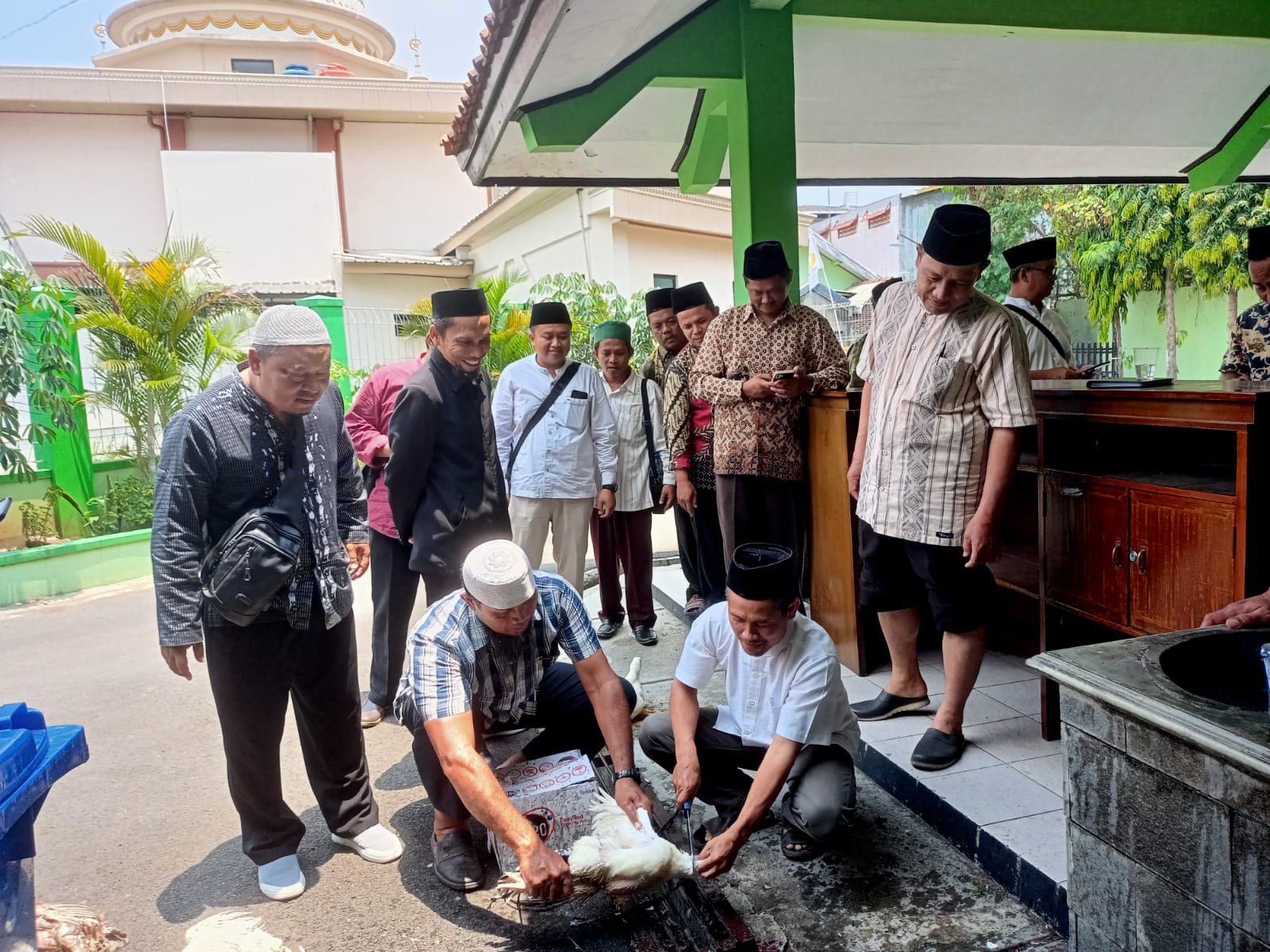 "Dalam proses penyembelihan pertama adalah pastikan pisau ataupun golok yang untuk menyembelih itu tajam. Sehingga ketika pisau kita tajam, maka penyembelihan berlangsung dengan cepat."