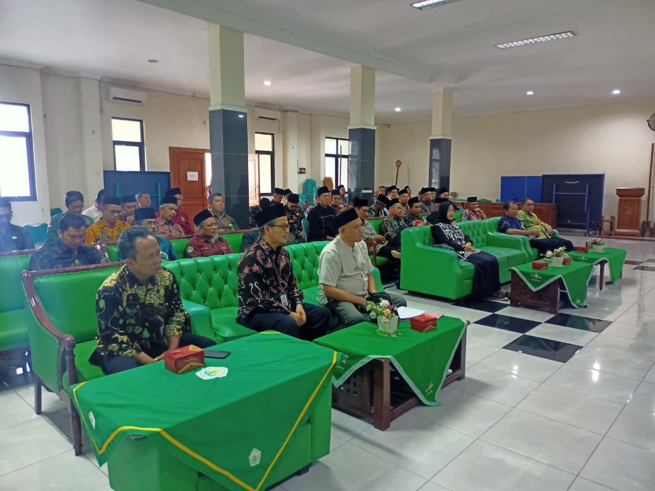 Suasana rapat berlangsung dinamis, terutama saat memasuki sesi diskusi dan tanya jawab di penghujung acara. Kesempatan ini dimanfaatkan secara maksimal oleh para peserta, termasuk delegasi dari KUA Jatilawang, untuk menyampaikan berbagai kendala teknis dan problematika lapangan yang sering ditemui di masing-masing kecamatan, mulai dari urusan administrasi hingga tantangan dalam menghadapi ahli waris.
