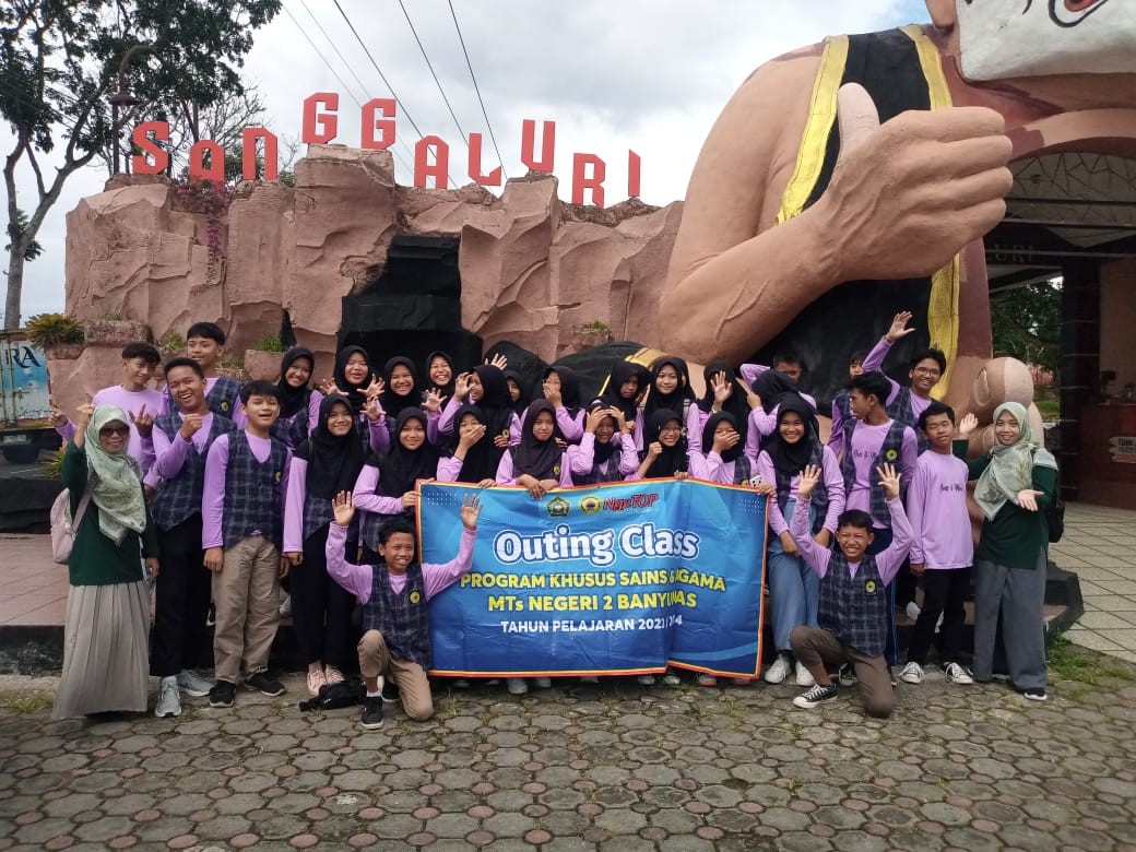 Kegiatan Outing Class sudah berjalan sebagai agenda tahunan di MTsN2 Banyumas khusus untuk kelas unggulan Program Khusus (PK Sains dan PK Agama Non Asrama) Kelas VIII. Sejumlah 67 pesdik yang terdiri 33 pesdik PK Sains dan 34 pesdik PK Agama melaksanakan kegiatan outing class ke Sanggaluri Park Purbalingga. Kegiatan tersebut dilaksanakan mulai pukul 07.30-16.00 WIB pada hari Kamis, 18 Januari 2024. Dibimbing langsung oleh guru pembimbing kelas PK sejumlah 4 orang guru.