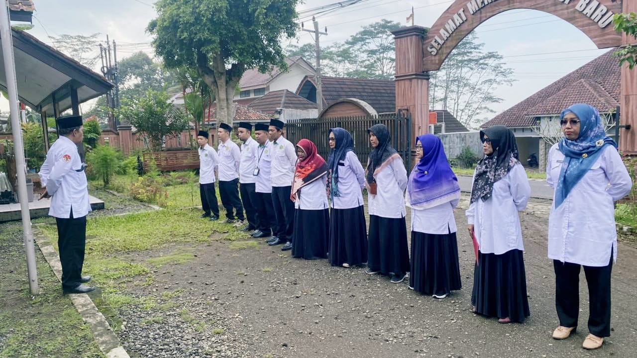 Banyumas - Semua pegawai KUA Baturraden melaksanakan apel pagi yang dipimpin langsung oleh Kepala KUA, Muson. Berbaris rapi dalam satu saf mendengarkan arahan dan beberapa informasi dari sang pimpinan. Senin (30/03)
