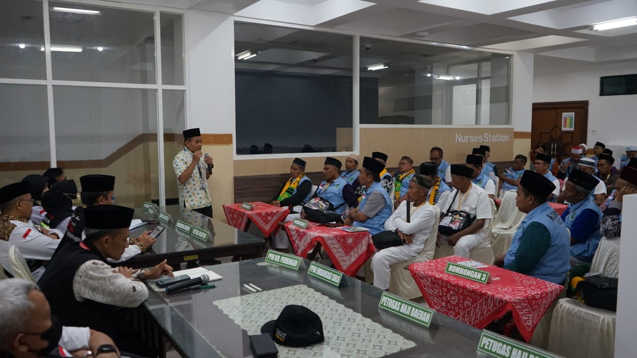 Sementara itu Ketua kloter 19, Edi Sungkowo menyampaikan bahwa kita harus selalu kompak dan koordinasi dengan ketua kloter dan tim yang lain. Dengan kekompakan kita mudah mudahan bisa menjadi pelayan yang baik bagi jamaah haji lain.