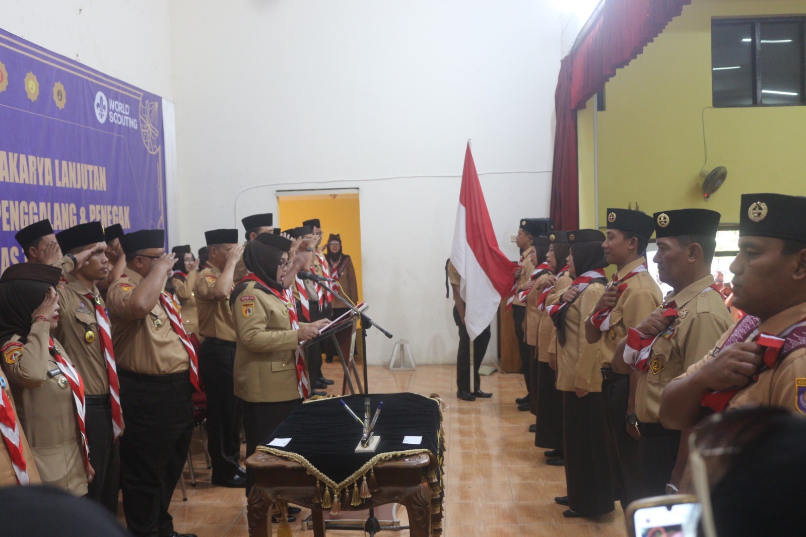 Pangkalan MTsN 2 Banyumas yang diikuti oleh Pembina Putri Kak Dewi Idayani dan Pembina Putra Kak Oki Nur Aris Irfangi pada jenjang golongan penggalang dan Narakarya dasar. Para Pembina yang dikukuhkan berhak menerima Piagam Narakarya, SHB dan THB, serta Tanda Jabatan Pembina sebagai bentuk fasilitas dan pengakuan resmi.(yud/Ning/twm)