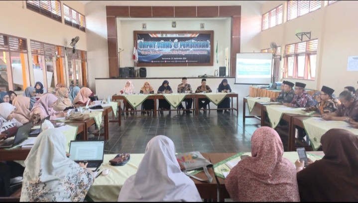 Purwokerto- MTs Negeri 1 Banyumas menggelar rapat dinas dalam rangka pembinaan guru dan karyawan yang dilaksanakan di ruang aula diikuti oleh seluruh guru dan karyawan pada hari Sabtu, 21 September 2024.
