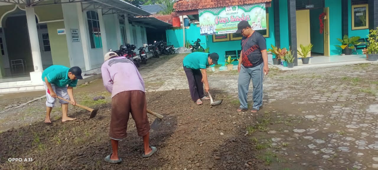 Pengurugan dilakukan pada kegiatan rutin Jum'at bersih KUA ASRI di halaman kantor KUA Kemranjen, tepatnya di area yang sering mengalami endapan air.