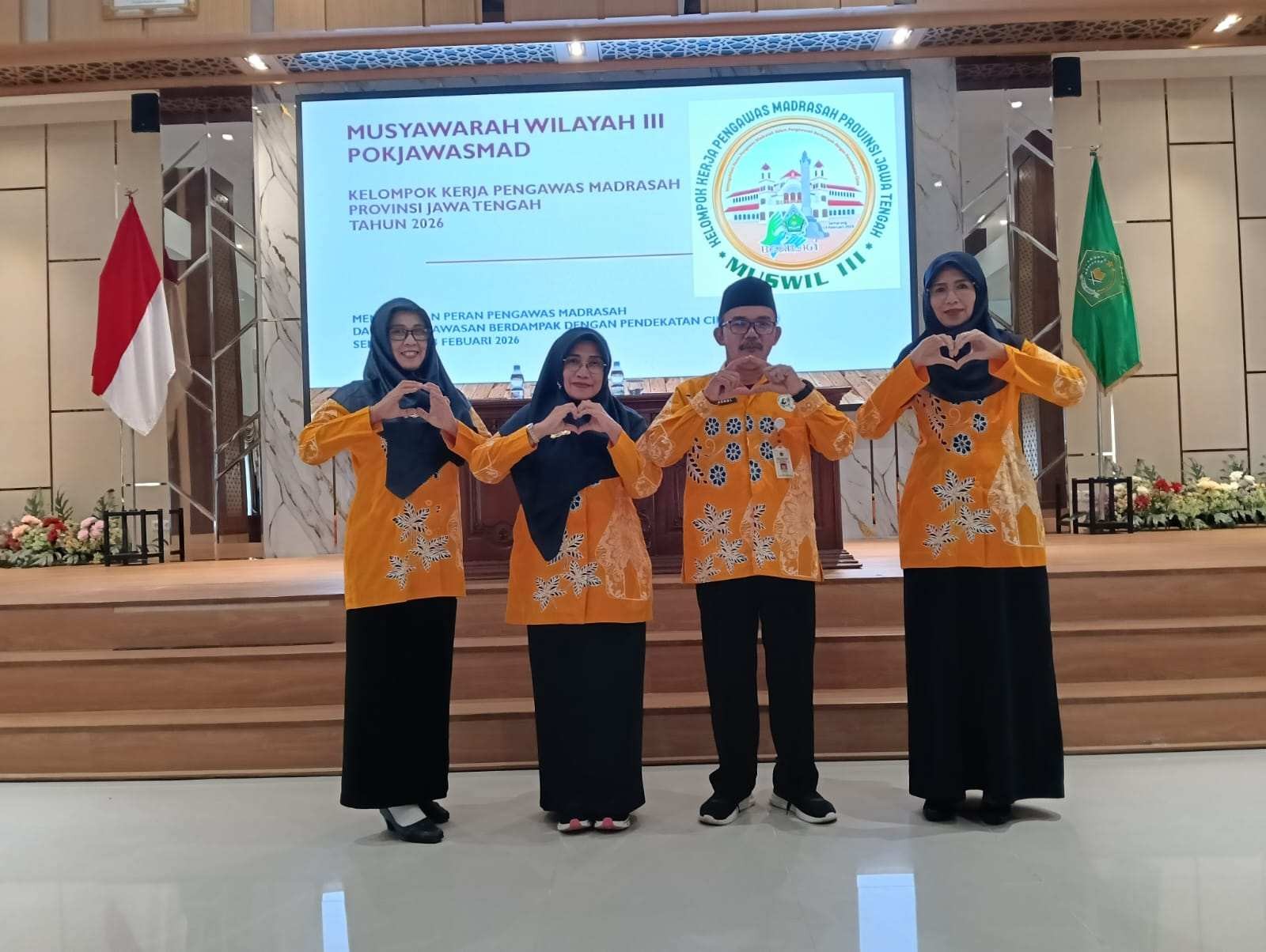 Semarang — Pengurus Harian Kelompok Kerja Pengawas (Pokjawas) Madrasah Kabupaten Banyumas menghadiri Rapat Koordinasi (Rakor) dan Musyawarah Wilayah (Muswil) III Pokjawas Madrasah Provinsi Jawa Tengah yang digelar di Kantor Wilayah Kementerian Agama Provinsi Jawa Tengah, Jalan Sisingamangaraja, Semarang. Jumat (13/02/26).
