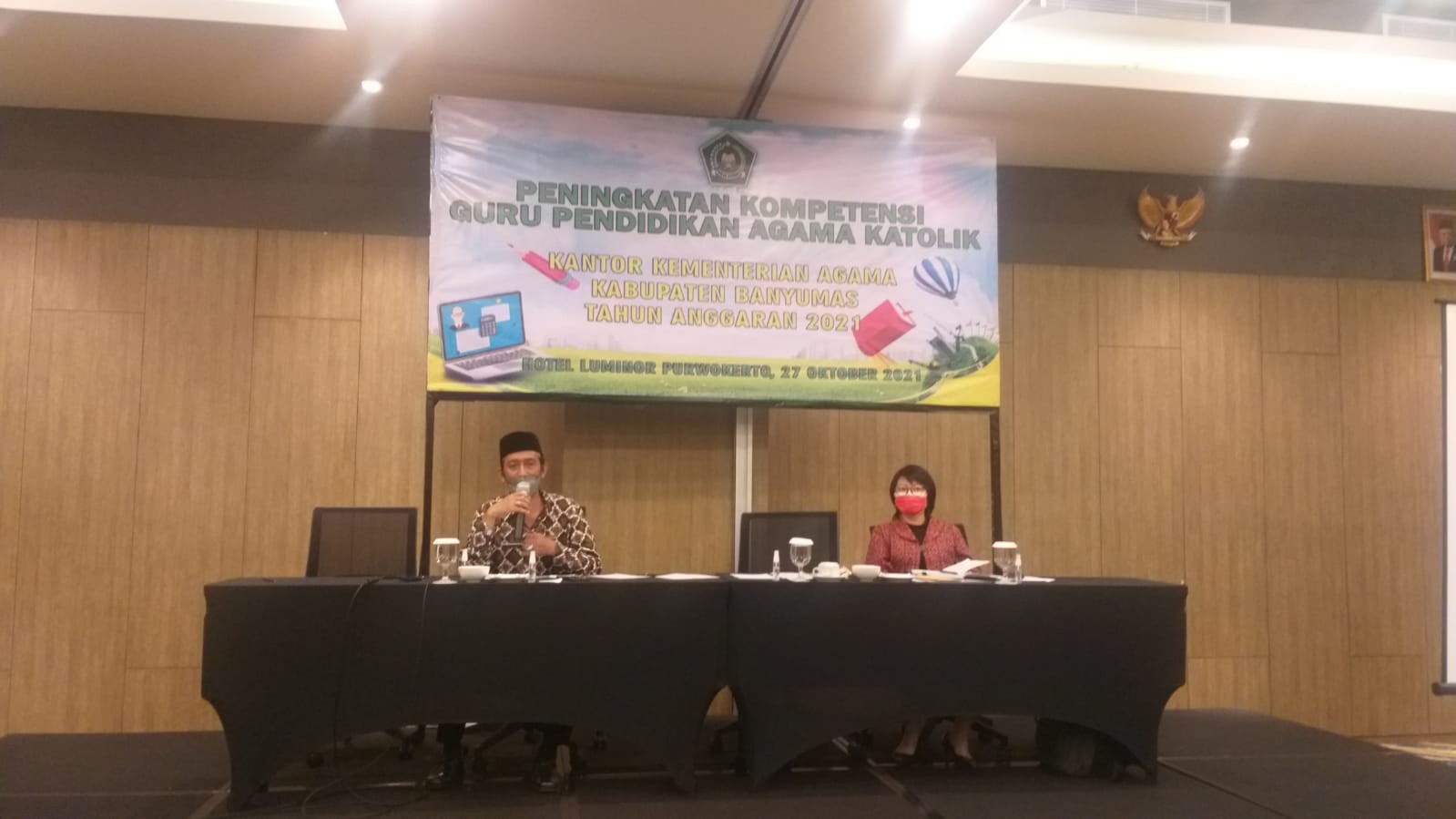 Purwokerto : Kepala Kantor Kemenag kabupaten Banyumas Drs. H. Akhsin Aedi, M.Ag didampingi Romo Yohanes Suratman,Pr, selaku Vikaris Jenderal Keuskupan Purwokerto , dan Drg. Andreas Kartiko selaku Anggota DPRD Kabupaten Banyumas Komisi IV, Gara Katolik Kemenag Banyumas Drs. Purnomo. Menutup kegiatan Peningkatan Kompetensi Guru Pendidikan Agama Katolik yang diselenggarakan oleh Gara Katolik kantor Kemenag Banyumas bertempat di Hotel Luminor Purwokerto, Rabu (27/10)