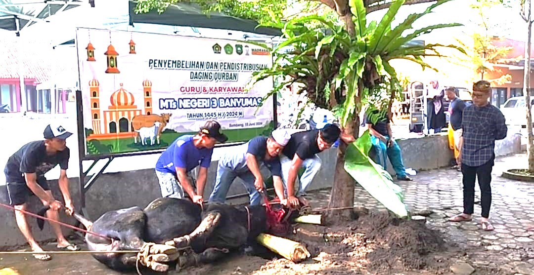 .Dalam rangka menyambut Hari Raya Idul Adha 1445 H, MTsN 3 Banyumas menyelenggarakan penyembelihan hewan kurban sebanyak 1 ekor sapi pada hari Selasa tanggal 18 Juni 2024.