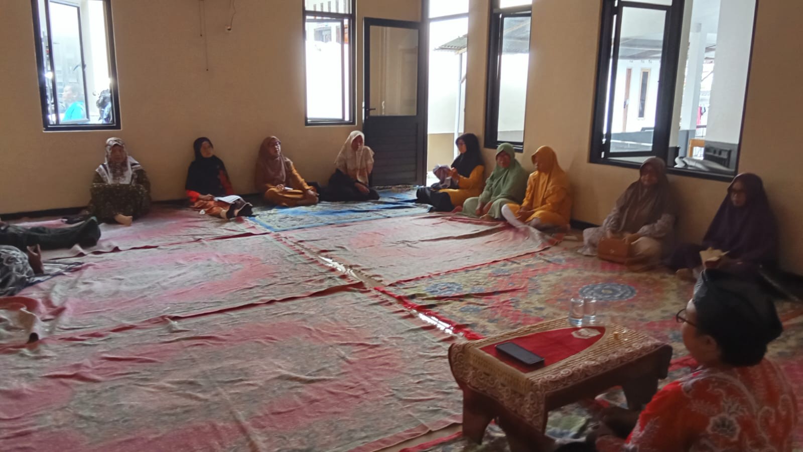 Para jamaah tampak mendengarkan materi dengan khidmat dan penuh semangat, sehingga suasana pengajian berlangsung hangat dan interaktif.