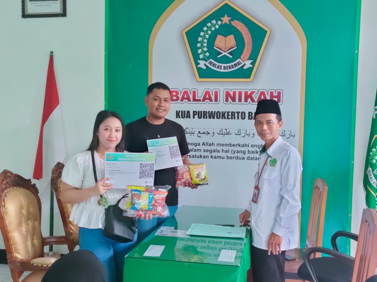 Banyumas – Kantor Urusan Agama (KUA) Purwokerto Barat kembali melaksanakan kegiatan bimbingan perkawinan bagi calon pengantin (catin). Kegiatan tersebut diikuti oleh pasangan calon pengantin atas nama Rachel Maulana dari Kelurahan Pasirmuncang dan Azizah Yuliasih dari Kelurahan Kedungwuluh, Purwokerto Barat. Selasa (21/04)