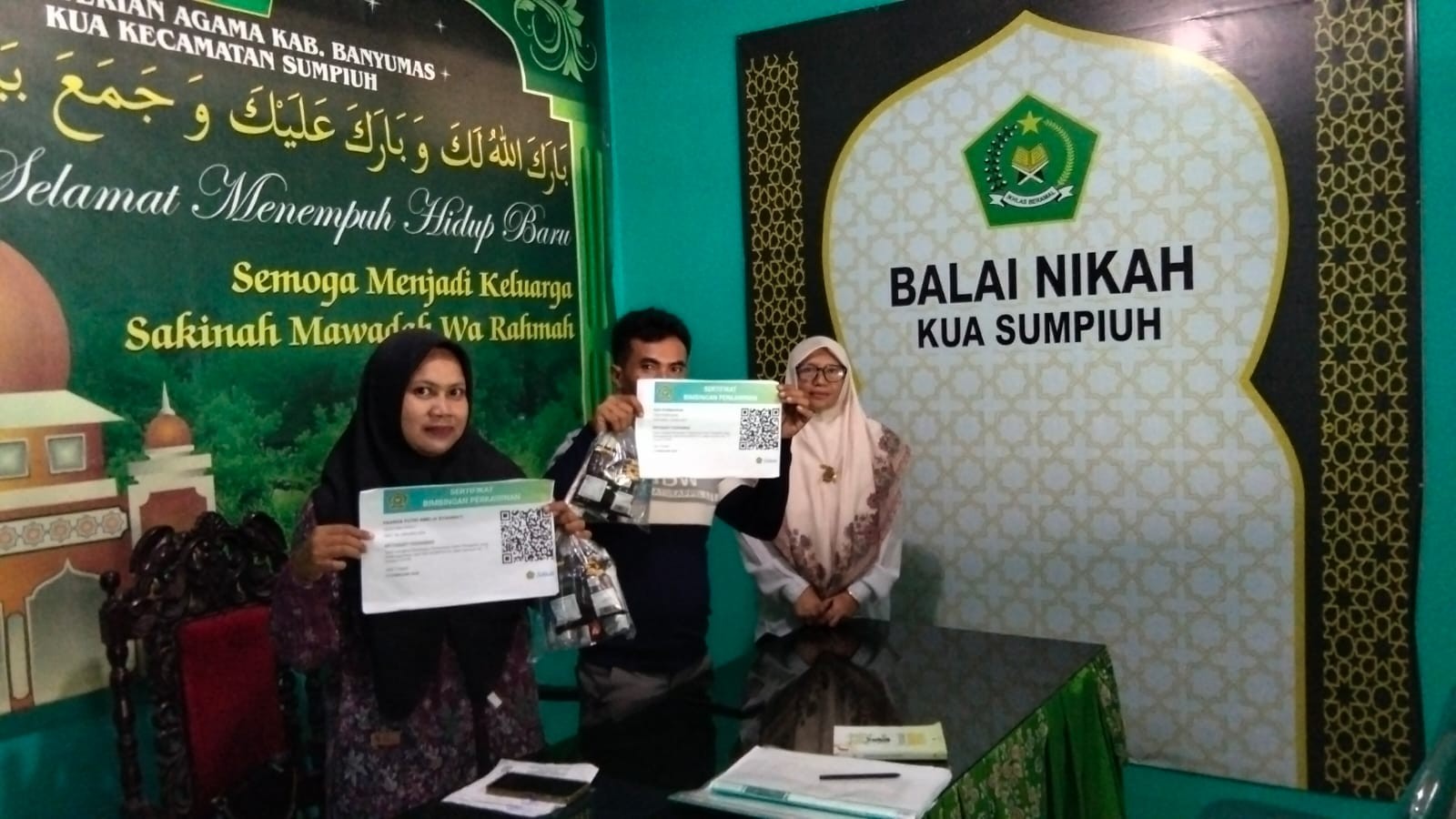Banyumas – Kantor Urusan Agama (KUA) Sumpiuh kembali melaksanakan program Bimbingan Perkawinan (Binwin) Mandiri bagi Pasangan Calon Pengantin (Catin). Kegiatan yang berlangsung di Balai Nikah KUA Sumpiuh ini diikuti oleh pasangan catin Rijal Thohirin dan Eka Priyatiningsih dari Desa Kuntili. Senin (06/04)