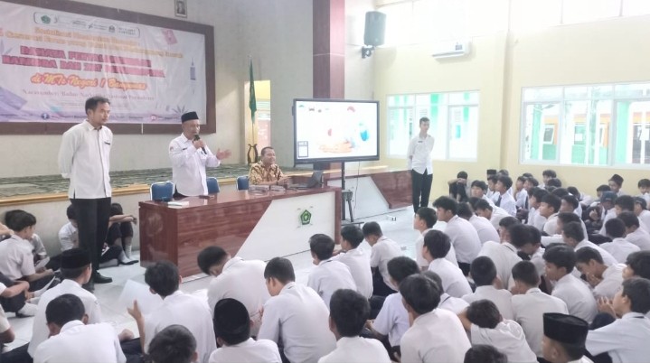 Purwokerto - Kegiatan Kokurikuler hari pertama MTs N 1 Banyumas diisi dengan kegiatan Penyuluhan Tentang Bahaya Narkotika, obat-obat terlarang serta minuman keras dan penyuluhan mengenai cara menjaga kesehatan alat reproduksi bagi wanita, yang digelar di dua tempat. Siswa putra dilaksanakan di Aula sedangkan siswi putri bertempat di Masjid Mambaul Ulum, pukul 07.30 WIB s.d 11.00 WIB. Selasa (09/12)