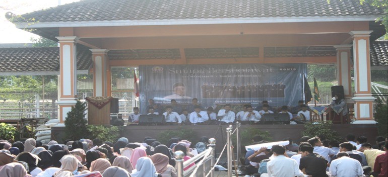 Purwokerto: Peringati Isra' Mi'raj Nabi Muhammad SAW tahun 1444 H / 2023 M ini SMAN 4 Purwokerto (SMAPA) menggelar gema sholawat dan pengajiant (Jumat,17/02). Kegiatan yang dilaksanakan di halaman upacara SMAPA ini dihadiri Kepala SMAN 4 Purwokerto, Ibu dan Bapak Guru karyawan, serta peserta didik kelas X, Xi dan XII.