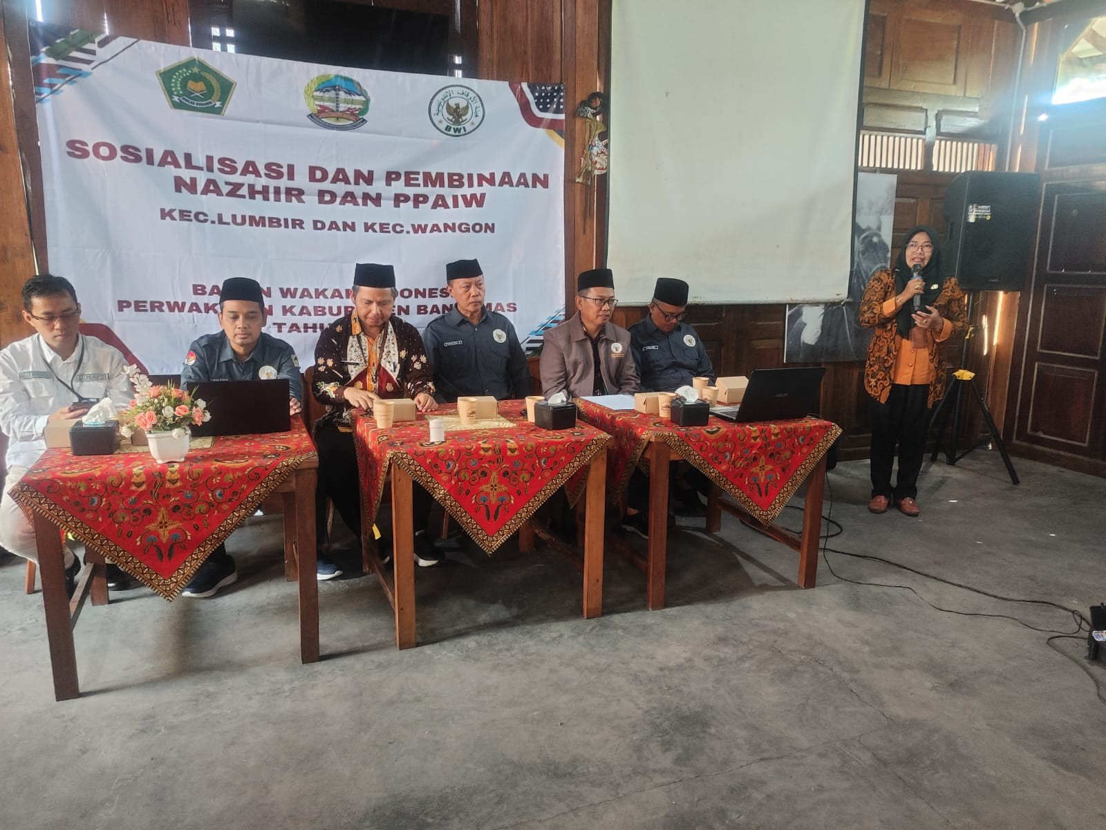 Purwokerto — Dalam rangka mendukung percepatan sertifikasi tanah wakaf di Kabupaten Banyumas, Badan Wakaf Indonesia (BWI) Kabupaten Banyumas bersama Bank Indonesia menggelar kegiatan Sosialisasi dan Pembinaan Nazhir serta Pejabat Pembuat Akta Ikrar Wakaf (PPAIW) untuk wilayah Kecamatan Lumbir dan Wangon. Kegiatan ini berlangsung di Rumah Makan Joglo Jawi, Wangon, dan dihadiri sekitar 50 peserta dari berbagai elemen masyarakat. Rabu (09/07)