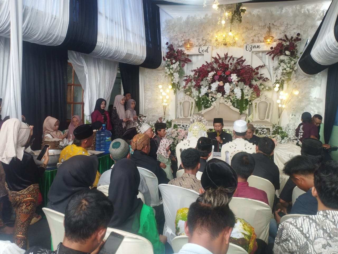 Akad nikah pasangan sejoli asal Desa Babakan ini dipimpin langsung oleh Lukman Hakim, selaku Penghulu KUA Karanglewas. Di hadapan wali nikah, saksi, dan keluarga besar kedua mempelai, prosesi ijab kabul berlangsung sangat tertib dan lancar.