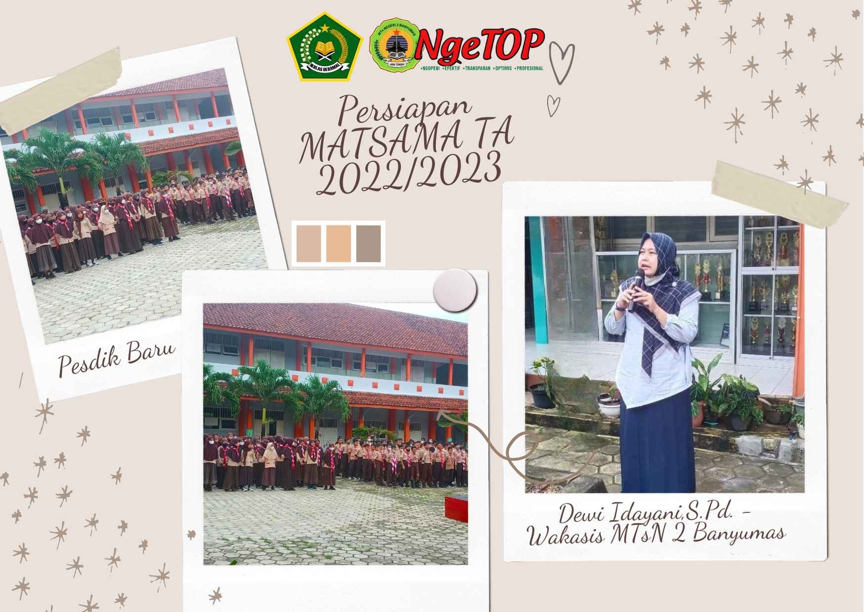 Banyumas - Sebanyak 191 peserta didik baru MTsN 2 Banyumas tahun pelajaran 2022/2023 antusias mengikuti pembekalan Masa Ta'aruf Siswa Madrasah (MATSAMA). Pembekalan MATSAMA dan pembagian kelas dilaksanakan pada Sabtu (16/7/22) dilakukan pada Rabu pagi (14/7), mulai jam 8.00 WIB di halaman MTsN 2 Banyumas.