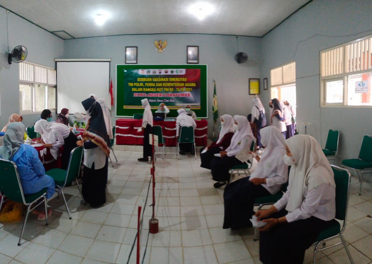 “Alhamdulillah Pesdik MTsN 2 Banyumas dapat mengikuti vaksin dosis kedua yang merupakan serbuan vaksinasi sinergitas TNI Polri, Pemda, dan Kementerian Agama ini dapat berjalan dengan lancar dan sukses, terima kasih kepada Forum Pimpinan Kecamatan Tambak khususnya TNI Polri dan jajarannya atas kerjasamanya, semoga pelaksanaan vaksin sebagai salah satu bentuk ikhtiar agar pandemi Covid-19 segera berakhir ini memperoleh hasil sesuai harapan sehingga seluruh peserta didik dapat melaksanakan pembelajaran tatap muka sebagaimana mestinya,“ jelasnya.