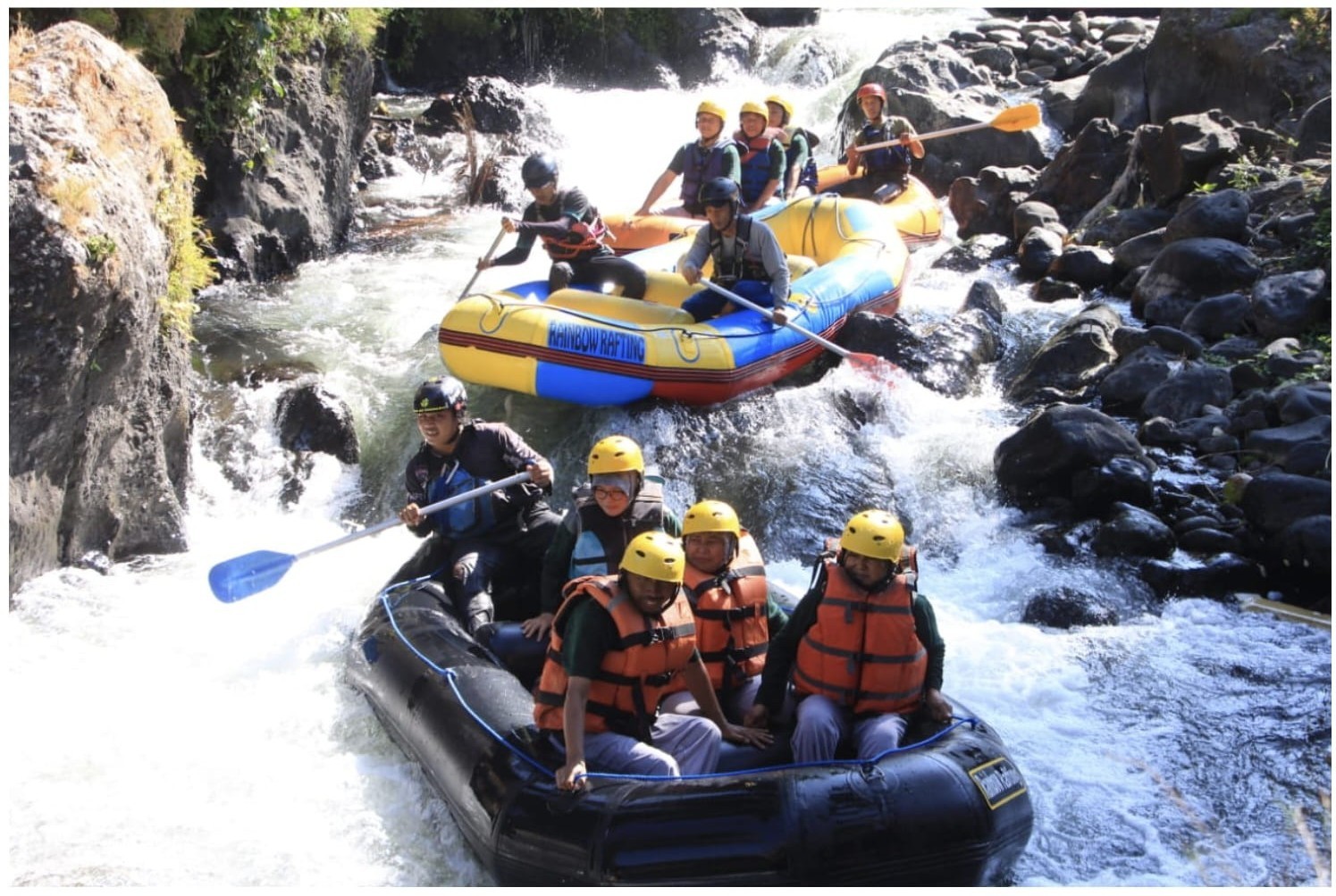 Petualangan dimulai dengan semangat tinggi ketika rombongan meluncur ke dalam air penuh keseruan. Mengarungi jeram air yang menghantam batu-batu sungai memberikan sensasi yang tak terlupakan bagi semua peserta. Ketika tim-tim mereka berhasil mengatasi tantangan tersebut, terdengar tawa dan sorak sorai kegembiraan.