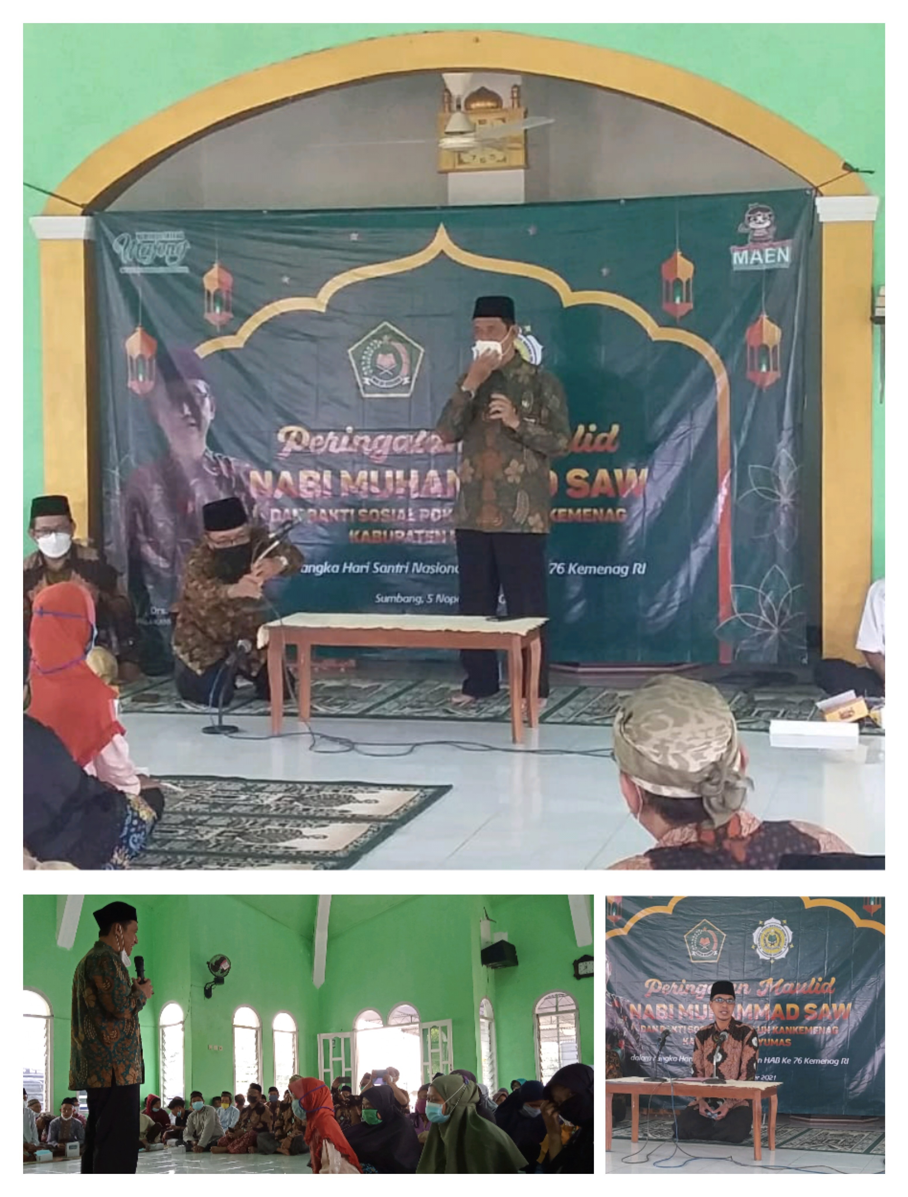 Sumbang - Sebagai bukti rasa syukur dan cinta kepada junjungan besar umat muslim Nabi Muhammad SAW, Kelompok Kerja Penyuluh Agama Islam (Pokjaluh) Kakankemenag Kabupaten Banyumas menggelar perayaan peringatan Maulid Nabi Muhammad SAW 1443 Hijriah di Masjid Al Islah Desa Sikapat Kecamatan Sumbang Kabupaten Banyumas, Jum'at (5/11).