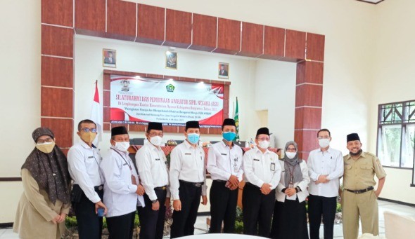 Purwokerto: Pengawas Pendidikan Agama Islam (PPAI) dan Guru Pendidikan Agama Islam (GPAI) yang diwakili oleh ketua FKG PAI TK, KKG PAI SD, MGMP PAI SMP, MGMP PAI SMA, MGMP PAI SMK dan DPD AGPAII Kab. Banyumas mengikuti pembinaan Aparatur Sipil Negara (ASN) dari Kakanwil Kemenag Provinsi Jawa Tengah yang diselenggarakan oleh Kemenag Kabupaten Banyumas Senin, 4 Oktober 2021 bertempat di Aula Al Ikhlas. (04/09).