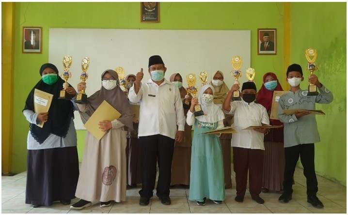 Kembaran: Pengawas Pendidikan Agama Islam (PPAI) serahkan Piala dan Setfifikat kepada peserta lomba Mata Pelajaran dan Seni Islami (MAPSI) yang mendapatkan kejuaraan tingkat 1 sampai dengan 3, di wilayah KKG PAI SD di Korwilcam Dindik Kecamatan Kembaran yang dilaksanakan di Aula PPAI Kecamatan Kembaran Selasa, 5 Oktober 2021 dengan tetap menggunakan protokol kesehatan karena masih Pandemi. (05/10)