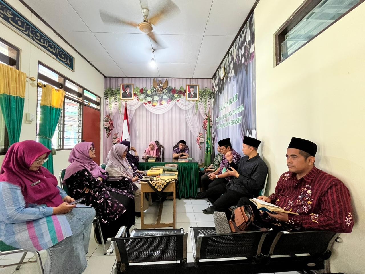 Dilanjutkan dengan pembacaan tadarus Al Qur'an Surat Ali Imran dan terjemahnya secara bergilir. Kajian kitab Nashoikhul Ibad Oleh Basyarudin, dan Pembahasan Permenag No. 30 Tahun 2024 Bab VI Pasal 38 tentang Penyerahan Buku Nikah oleh Slamet Rijanto.